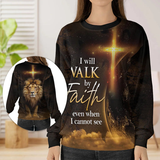 Christianartbag 3D Sweater, I Will Walk By Faith Even When Cannot See Lion, Unisex Sweater, Christmas Gift.