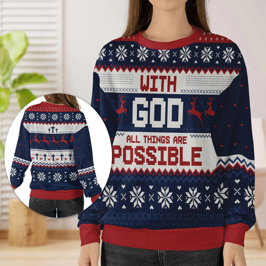 Christianartbag 3D Sweater, With God All Things Are Possible Matthew 19:26, Unisex Sweater, Christmas Gift.