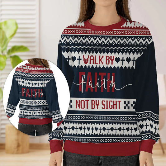 Christianartbag 3D Sweater, Walk By Faith, Not By Sight 2 Corinthians 5:7, Unisex Sweater, Christmas Gift.