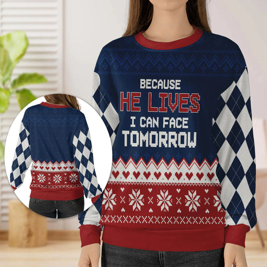 Christianartbag 3D Sweater, Because He Lives Can Face Tomorrow, Unisex Sweater, Christmas Gift.