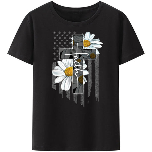CHRISTIANARTBAG T-Shirt - Faith Flag Daisy T-Shirt - Bible Verse Shirt - Scripture Shirt For Women - CABTS01310524
