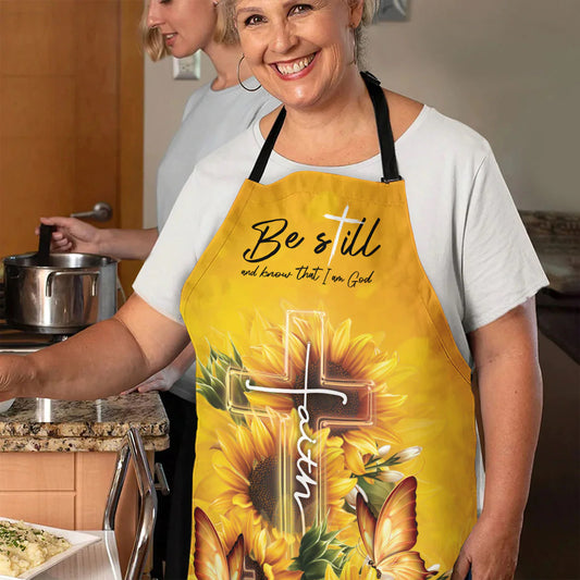 Christianartbag Apron, Be Still And Know That I Am God Psalm 46:10, Sunflower & Faith Cross, Apron for Women, Gift For Women, Christmas Gift,