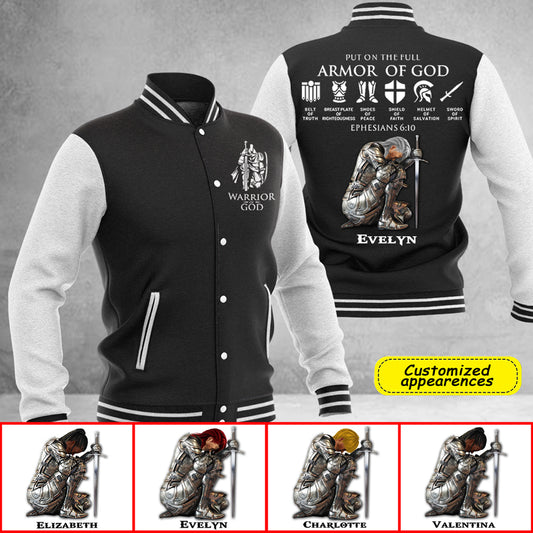 Christianartbag Baseball Jacket, Put On The Full Armor Of God Personalized Baseball Jacket, Personalized Baseball Jacket, CAB010912.