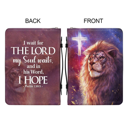 Christianart Bible Cover - I Wait For The Lord My Soul Waits Psalm 130:5 - Personalized Gifts for Pastor - Personalized Bible Cover For Men - CABBBCV19060324.