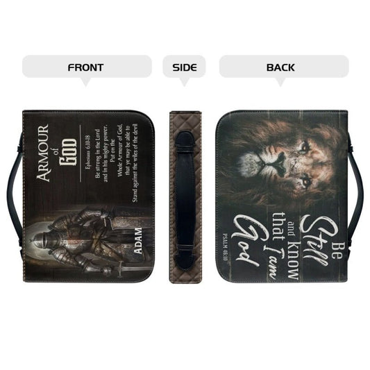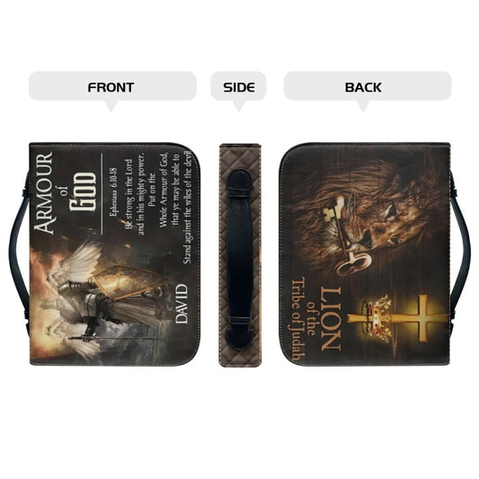 "Armour of God" Knight and Lion of Judah Leather Bible Cover with Personalization - CHRISTIANARTBAG CABBBCV02030324.