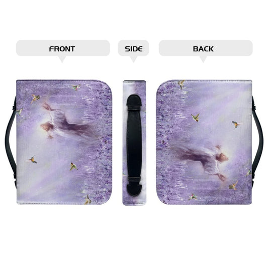 Personalized Spiritual Awakening Bible Cover - Jesus in Purple Meadow Art with Custom Name Option by CHRISTIANARTBAG CABBBCV02270324
