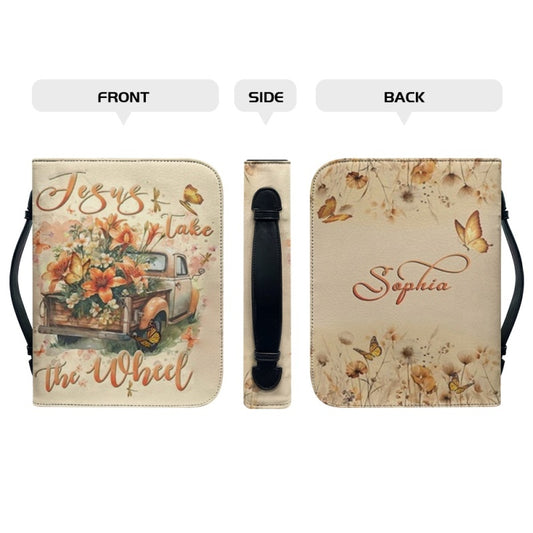 Christianartbag Bible Cover, jesus Take The Wheel Bible Cover, Personalized Bible Cover, Car Flower Bible Cover, Christian Gifts, CAB07090124.