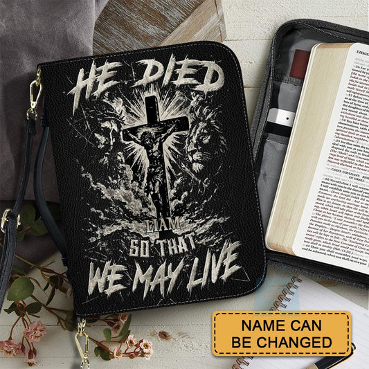 CHRISTIANARTBAG Bible Cover - He Died So That We May Live - Personalized Bible Cover – Custom Name – CHRISTIANARTBAG Gift for Christians CAB07280625