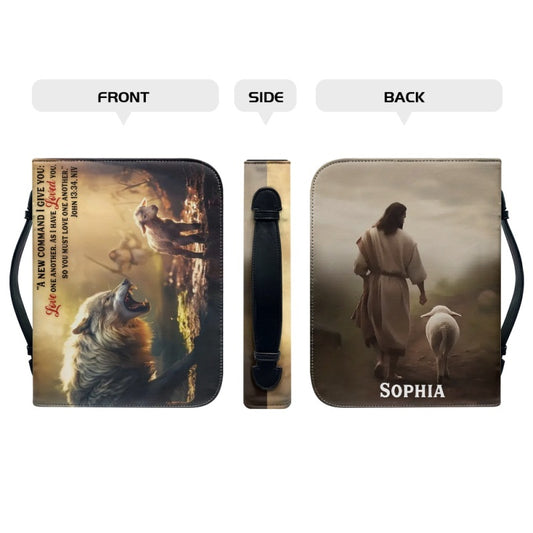 Christianartbag Bible Cover, Jesus Saves Sheep From Wolves Bible Cover, Personalized Bible Cover, Jesus Bible Cover, Christian Gifts, CAB05060124.