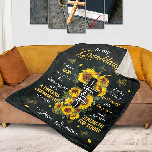 Personalized Faith Sunflower Blanket for Granddaughter - Fleece Blanket From Grandpa - CHRISTIANARTBAG CABBL01050424