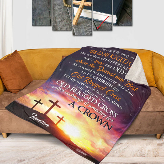 Personalized 'Old Rugged Cross' Inspirational Blanket - CHRISTIANARTBAG CABBL03050424.
