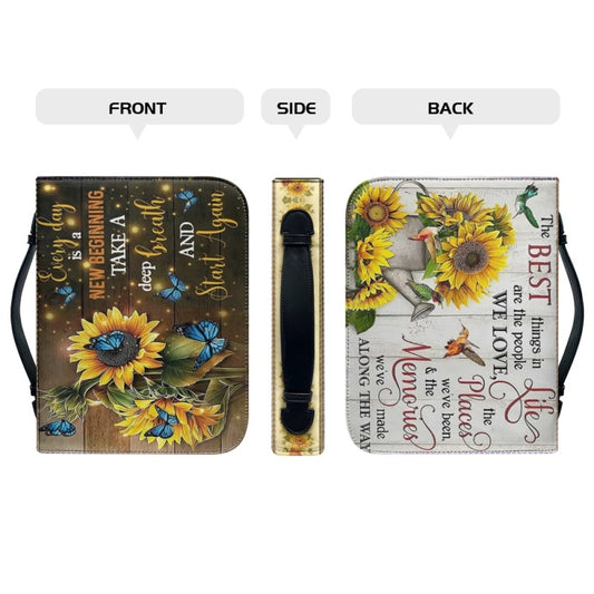 Christianartbag Bible Cover, Every Day Is A New Beginning Bible Cover, Personalized Bible Cover, Sunflower Butterfly Hummingbird Bible Cover, Christian Gifts, CAB18081123.