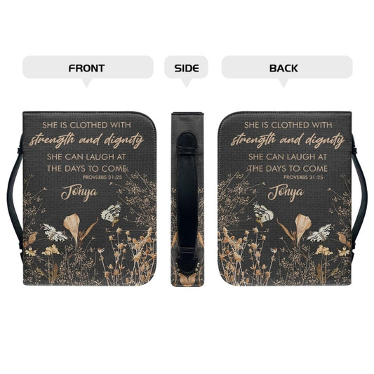 Christianartbag Bible Cover, She Is Clothed With Strength and Dignity Her Bible Cover, Personalized Bible Cover, Flower Bible Cover, Christian Gifts, CAB05201123.