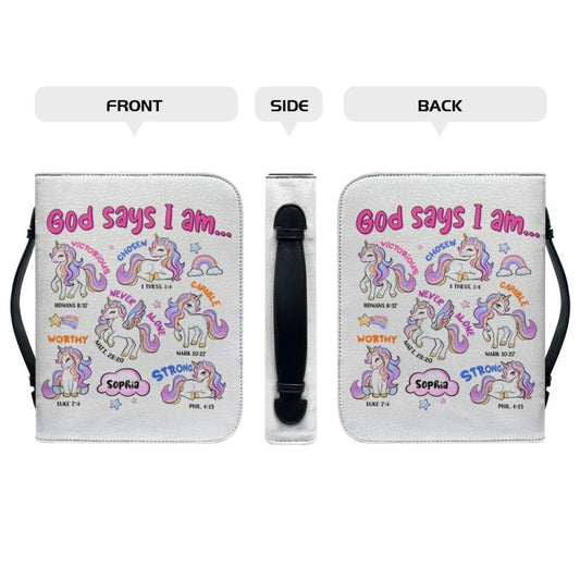 Christianartbag Bible Cover, God Says I Am Bible Cover, Personalized Bible Cover, Unicorn Pink Bible Cover, Bible Cover For Kids, Christian Gifts, CAB01281123.