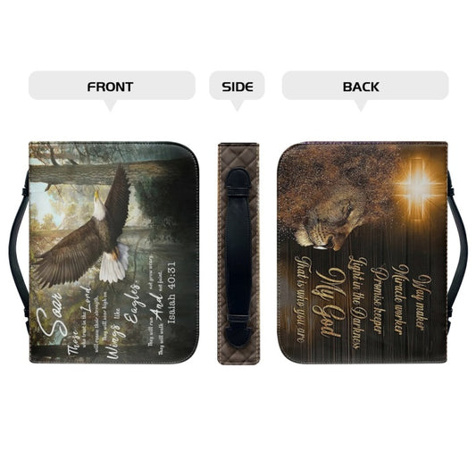 Christianartbag Bible Cover, Soar Those Who Trust In The Lord Isaiah 40:31 Bible Cover, Personalized Bible Cover, Eagle Cross Lion Bible Cover, Christian Gifts, CAB19081123.