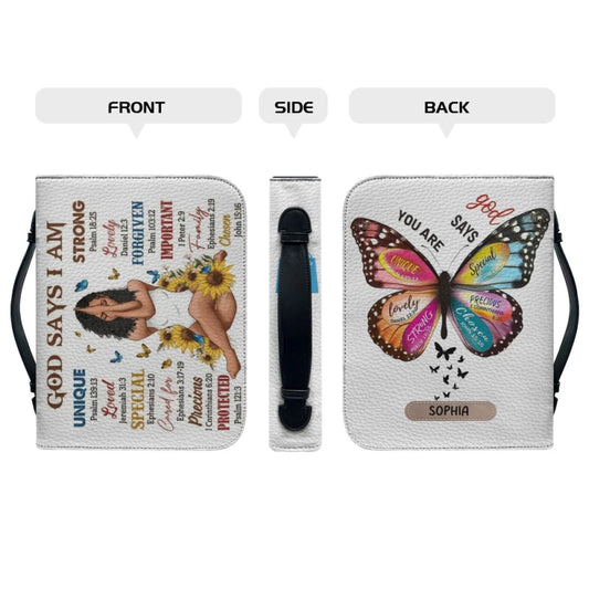 Christianartbag Bible Cover - God Says I Am Bible Cover - Personalized Bible Cover - Butterfly Bible Cover - CABBBCV02170923.