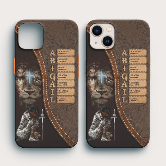 Personalized Christian Phone Case | Custom Name & Skin Tone | Lion & Armor of God Design with Bible Verse Initials