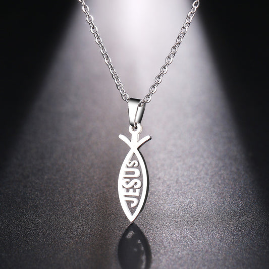 Christianartbag Jewelry, Stainless Steel Necklace For Women Man Lover's Sharp Jesus Fish Shape Color Pendant Necklace Engagement Jewelry,CABJWL05270723