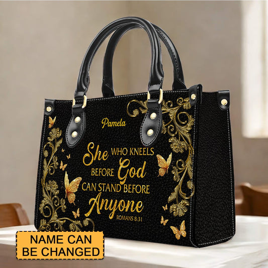 Christianartbag Handbags, She Who Kneels Before God Romans 8 31, Handbag Design, Monogram Leather Handbag, Gifts for Women, CABLTB01271223.