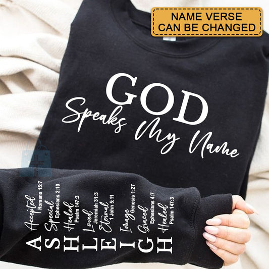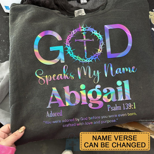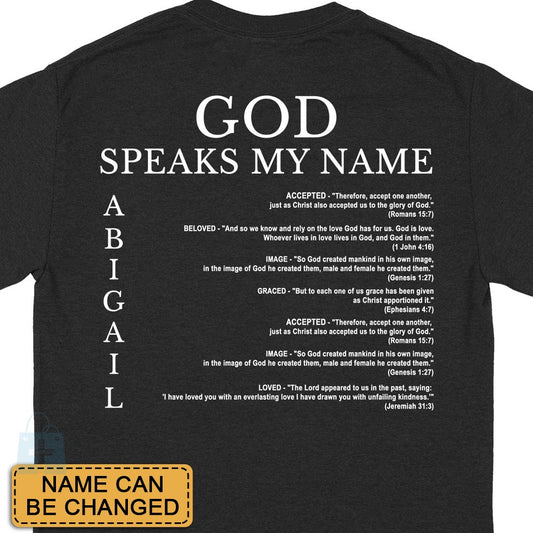 Personalized Christian T-Shirt – God Speaks My Name with Bible Verse – Custom Name & Scripture Faith Shirt – Gift for Women of Faith