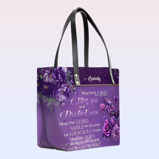 Personalized Leather Tote Bag with Bible Verses – May The Lord Bless You – A Statement of Faith & Strength | CHRISTIANARTBAG Leather TOTE Bag.