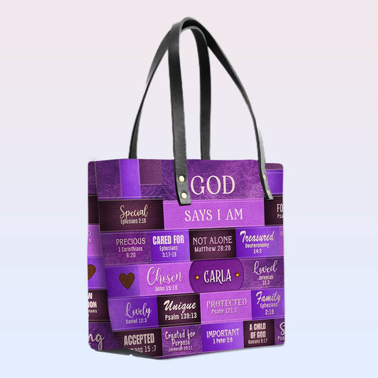 Personalized Leather Tote Bag with Bible Verses – GOD Says I Am – Custom Faith-Inspired Handbag | CHRISTIANARTBAG Leather TOTE Bag