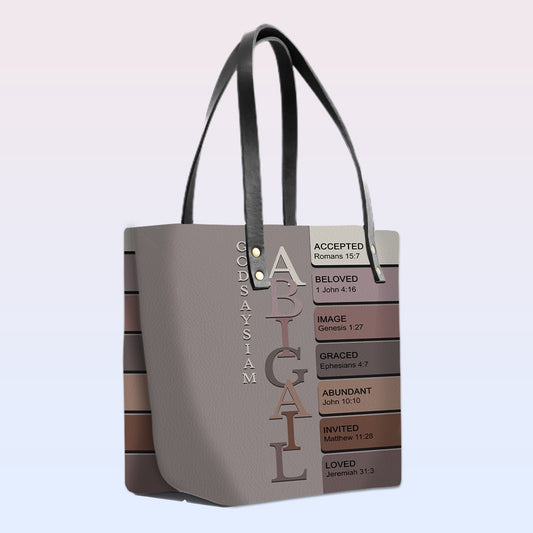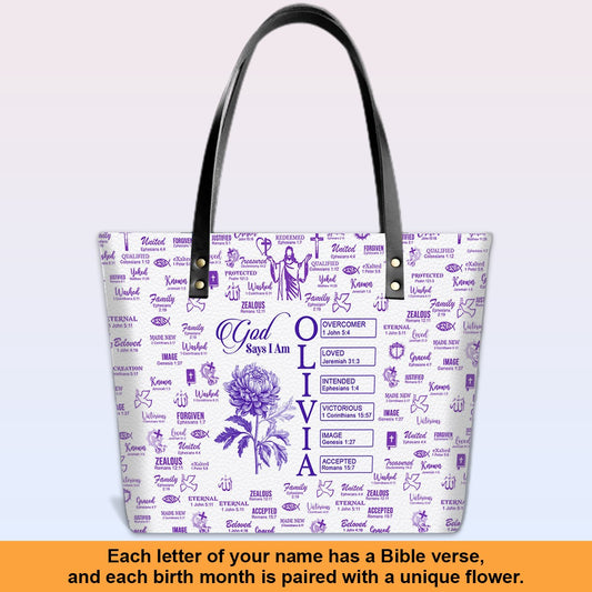 Personalized “God Says I Am” Luxury Leather TOTE Bag for Christian Women – Custom Name & Color | CHRISTIANARTBAG