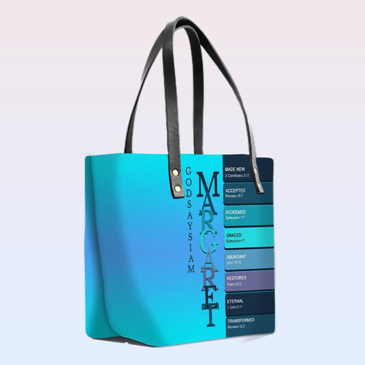 Personalized Leather Tote Bag with Bible Verses – Uncover the sacred meaning of your name – Custom Faith-Inspired Handbag Gradient Color | CHRISTIANARTBAG Leather TOTE Bag