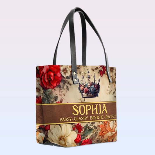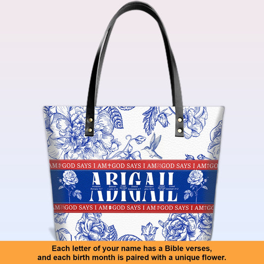 Personalized Leather Tote Bag Luxury – Custom Name, Bible Verses & Birth Flower | CHRISTIANARTBAG