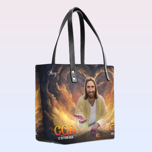 Personalized Leather Tote Bag with Bible Verses – God is within her, she will not fall Psalm 46:5 | Custom Name | CHRISTIANARTBAG Leather TOTE Bag