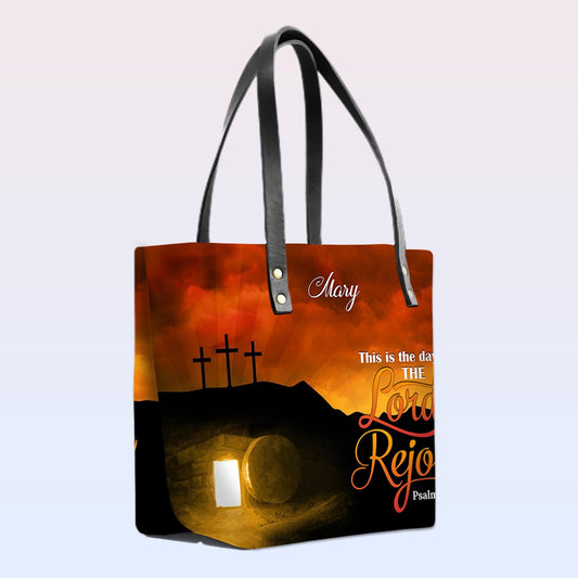Personalized Leather Tote Bag with Bible Verses – This is the day the Lord has made let us rejoice! Psalm 118 24 | CHRISTIANARTBAG Leather TOTE Bag