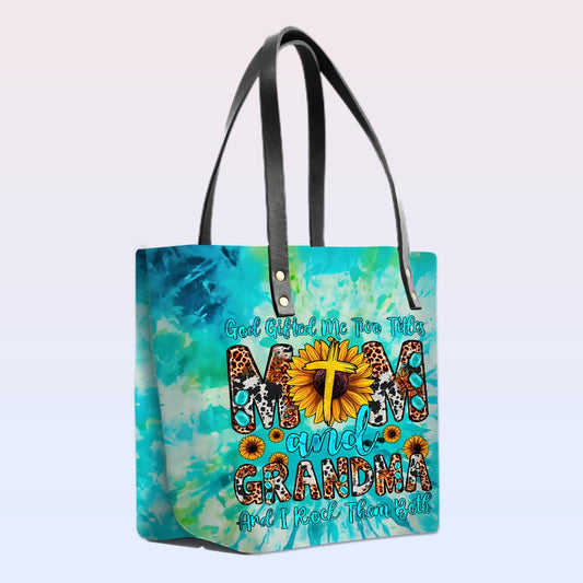 Personalized Leather Tote Bag with Bible Verses – God Gifted Me Two Titles Tie Dye | CHRISTIANARTBAG Leather TOTE Bag