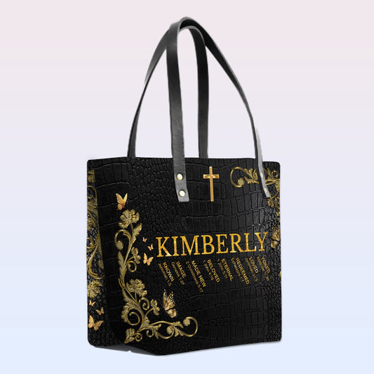 Personalized Leather Tote Bag with Bible Verses – Custom Name and Skintone – Uncover the sacred meaning of your name | CHRISTIANARTBAG Leather TOTE Bag