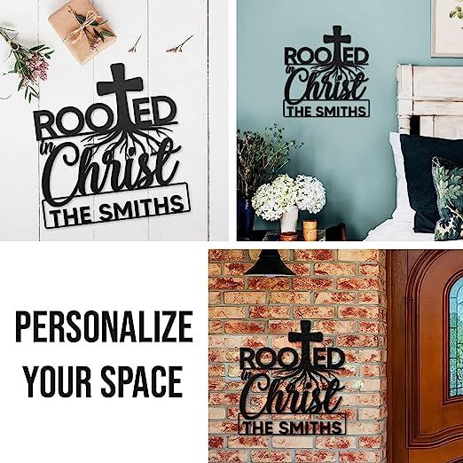 Christianartbag Metal Signs, Rooted In Christ, Personalized Metal, Christian Wall Art With Religious Scripture, Appreciation Gifts For Family