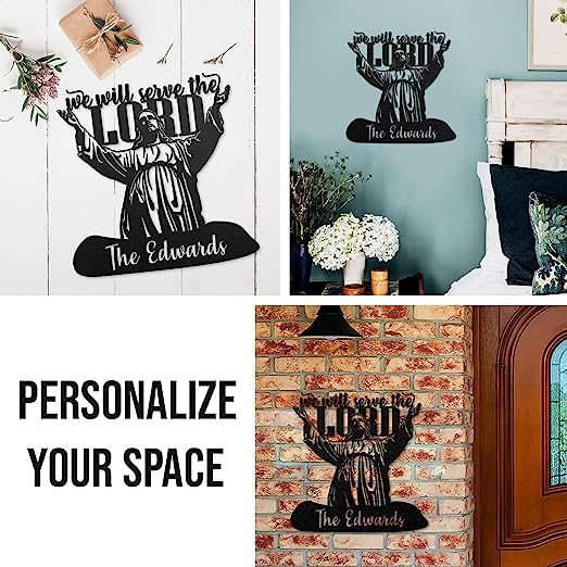Christianartbag Metal Signs, We Will Serve The Lord, Personalized Metal, Christian Wall Art With Religious Scripture, Appreciation Gifts For Family