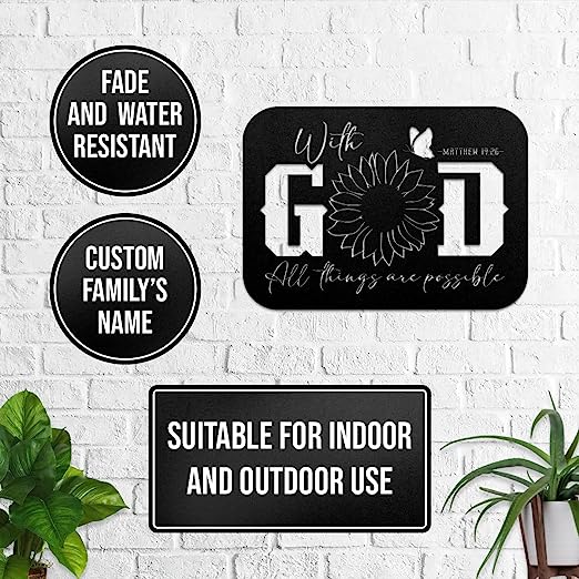 Christianartbag Metal Signs, With God All Things Are Possible Matthew 19:26, Christian Wall Art With Religious Scripture, Appreciation Gifts For Family