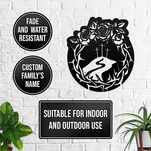 Christianartbag Metal Signs, Crown Of Thorns With Flowers & Cross, Christian Wall Art With Religious Scripture, Appreciation Gifts For Family