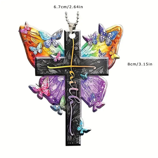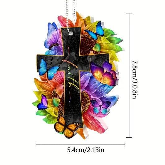 Christianartbag Ornament, Cross Butterfly Flower Faith Ornament, Christmas Ornament, Christmas Gift, Personalized Ornament, CABOM01250923.