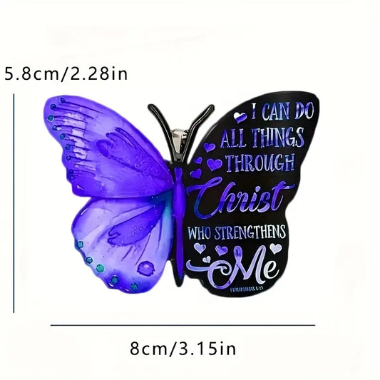 Christianartbag Ornament, Pink Letter Butterfly I Can Do All Things Through Christ Ornament, Christmas Ornament, Christmas Gift, Personalized Ornament.