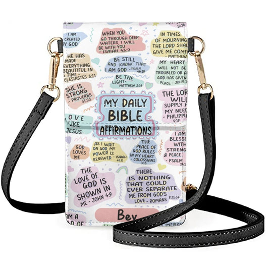 Christianartbag Phone Bag, Bible Daily Affirmations Personalized Phone Bag, Personalized Phone Bag, Leather Phone Bags, Phone Bags Crossbody, CABPB01210823.