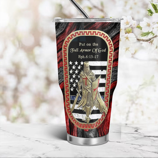 Christianartbag Drinkware, Put On The Full Armor Of GOD Personalized Tumbler , Personalized Mug, Red Black Tumbler, Christian Gift, CABTB05170823.