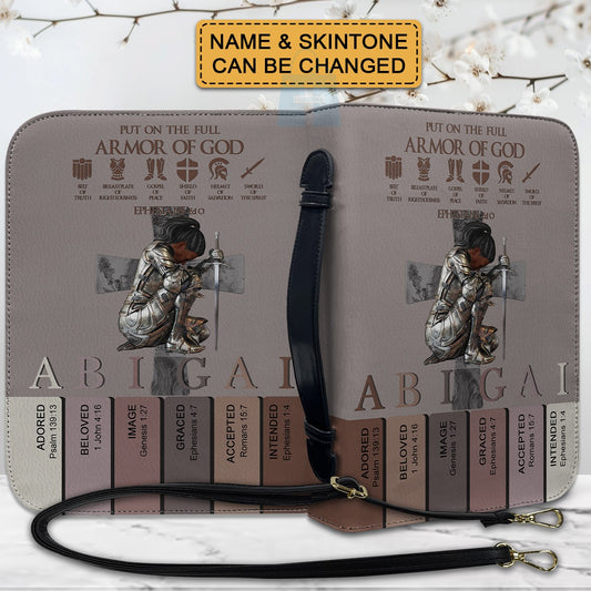 Personalized Armor of God Bible Cover – Custom Name & Skin Tone – Each Letter Linked to a Bible Verse