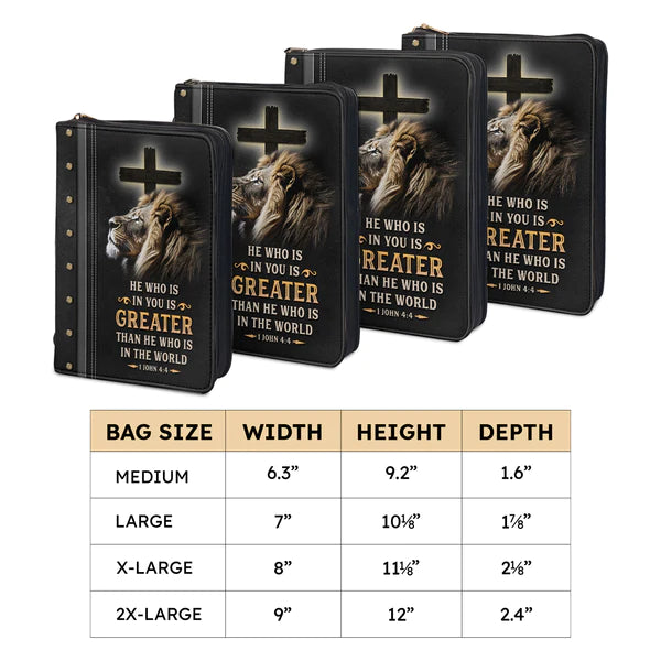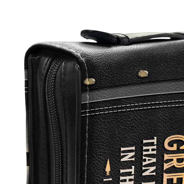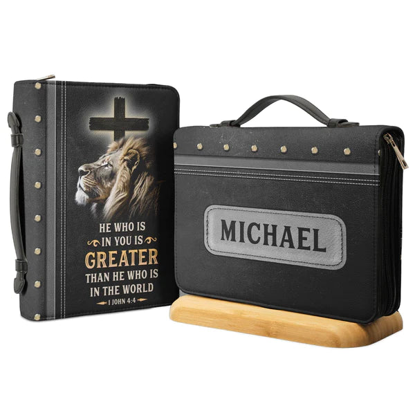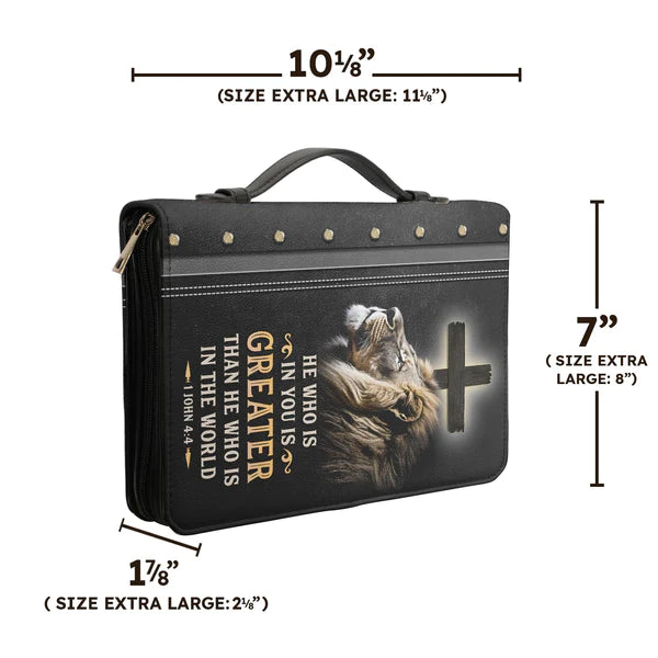 Christianart Bible Cover - He Who Is In You Is Greater Than He Who Is In The World 1 John 4:4 - Personalized Bible Cover - Bible Cover For Men - CABBBCV20070324.
