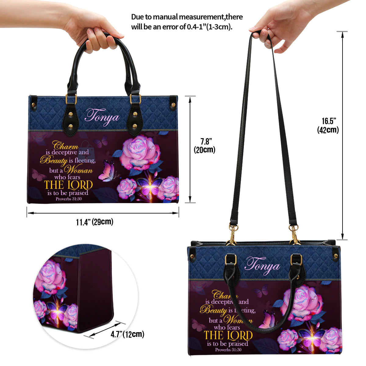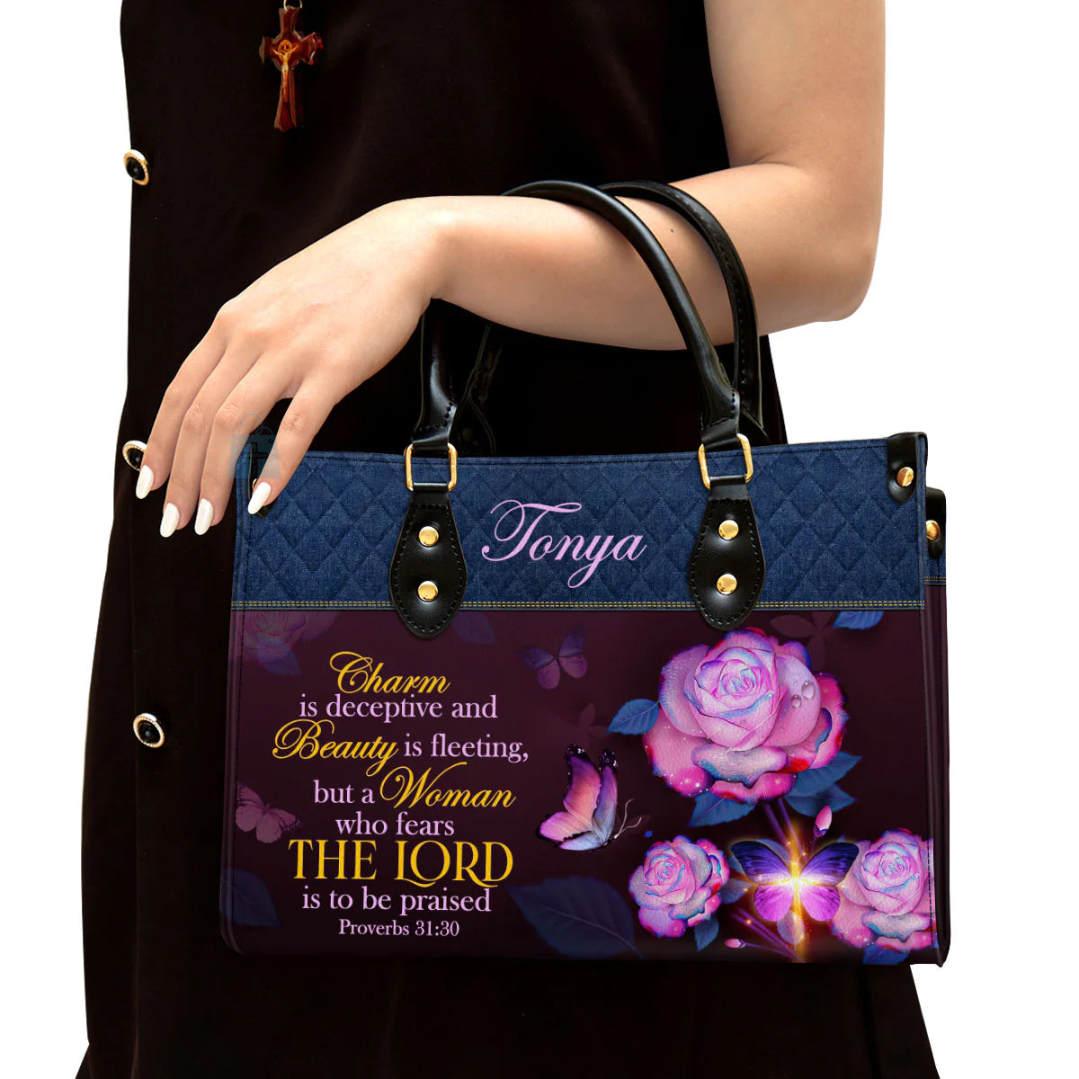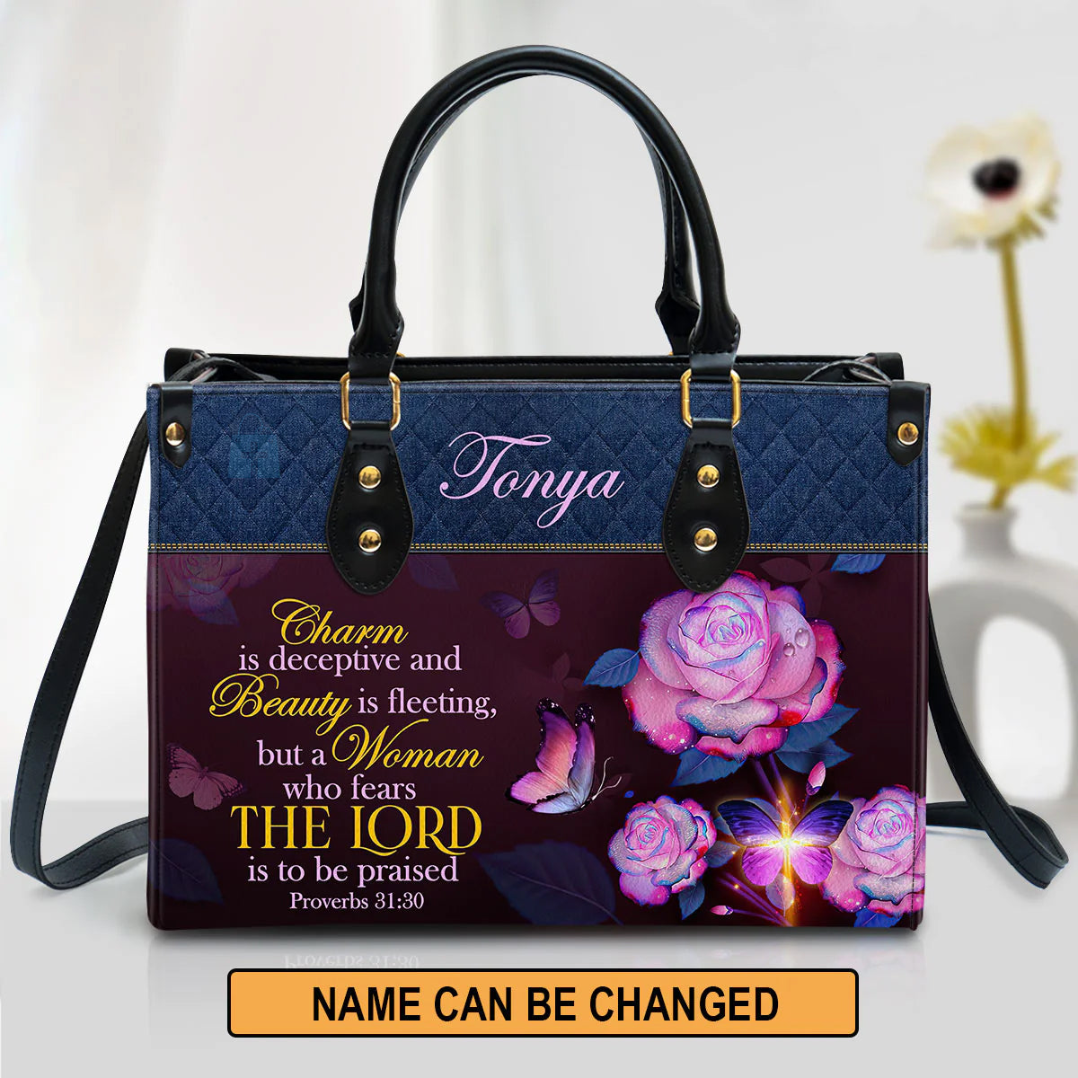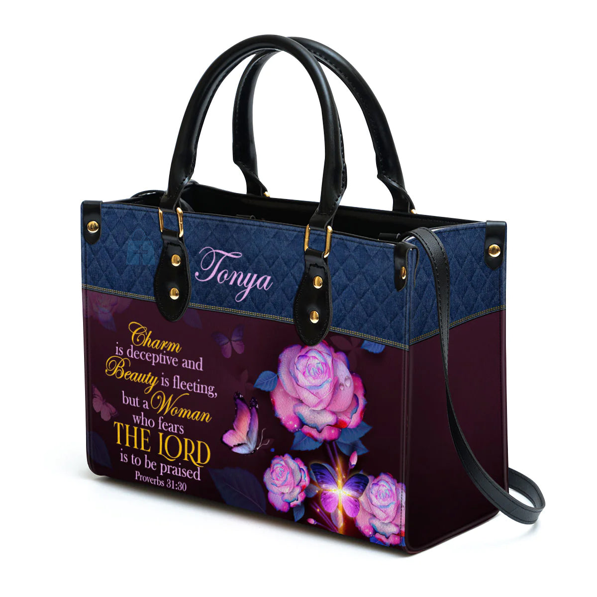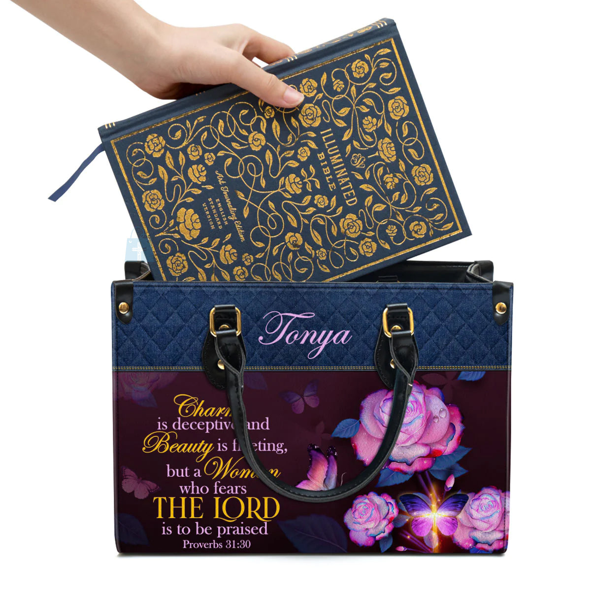Christianart Handbag, Women Who Fears The Lord Proverbs 31:30, Personalized Gifts, Gifts for Women, Holiday Gift.
