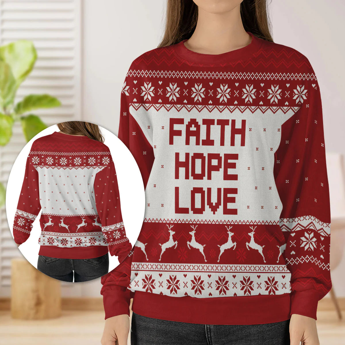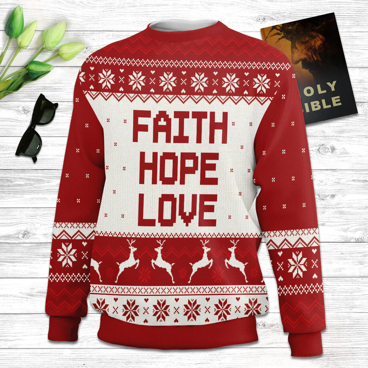 Christianartbag 3D Sweater, Faith, Hope, Love, Unisex Sweater, Christmas Gift.