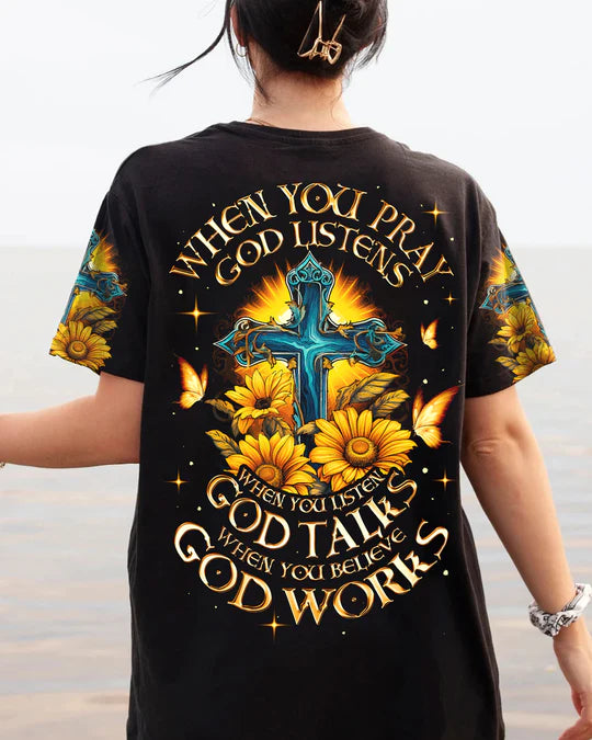 Christianartbag 3D T-Shirt For Women, When You Pray God Listens Women's All Over Print Shirt , Christian Shirt, Faithful Fashion, 3D Printed Shirts for Christian Women