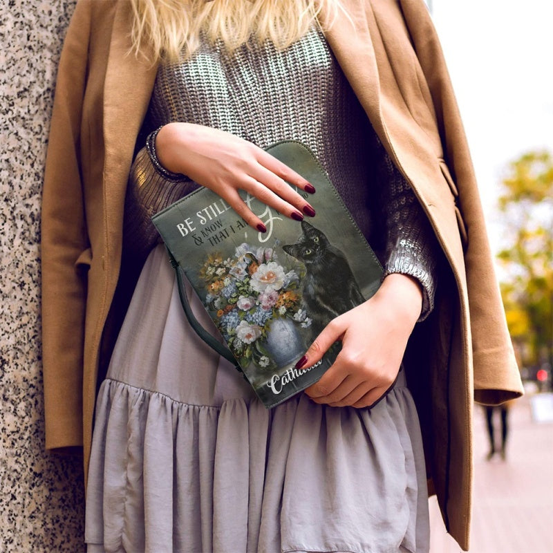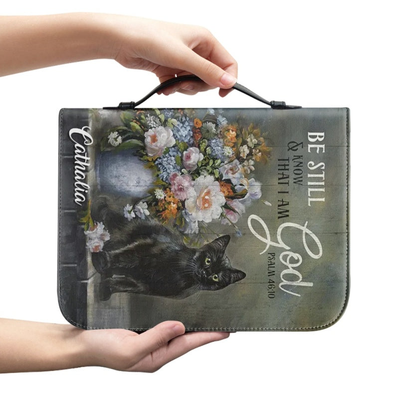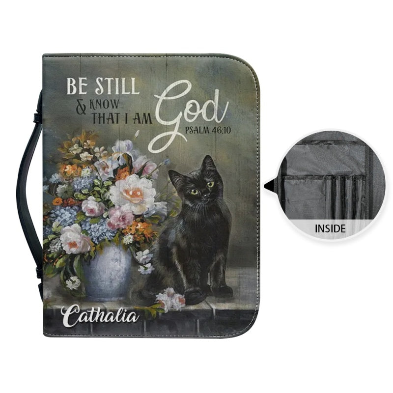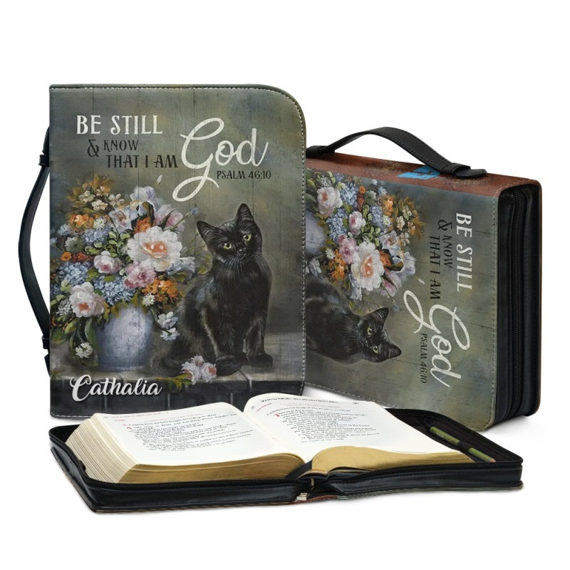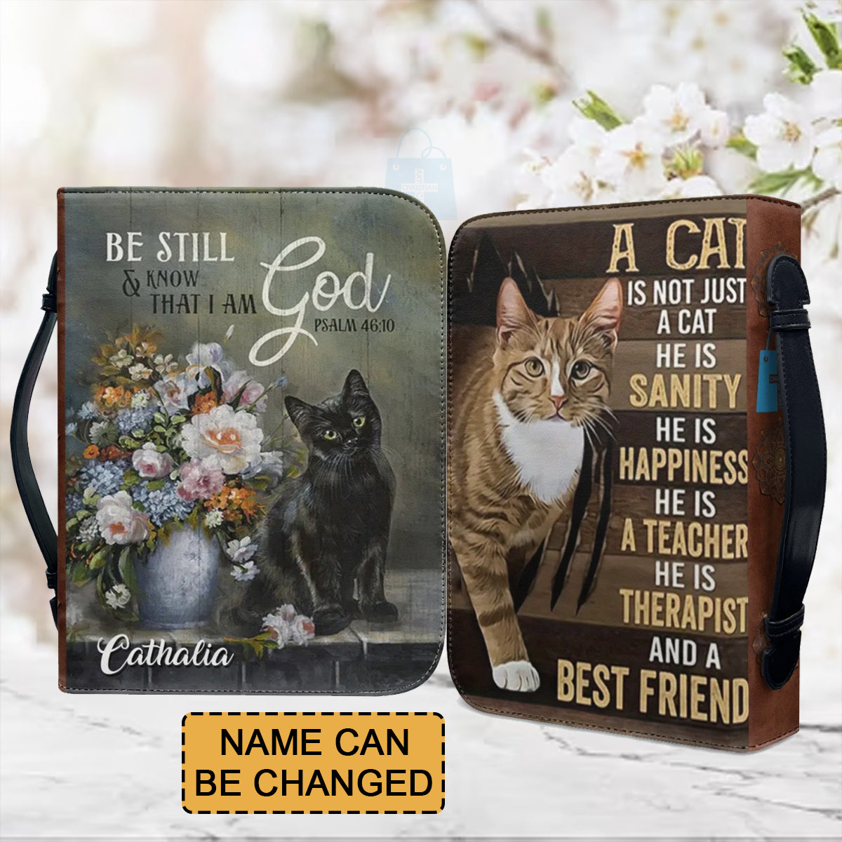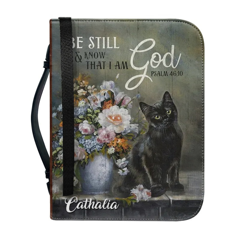 Christianartbag Bible Cover, Be Still and Know That I Am God Psalm 46:10 Bible Cover, Personalized Bible Cover, Cat Bible Cover, Christian Gifts, CAB06251023.
