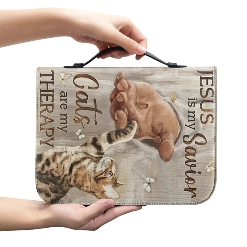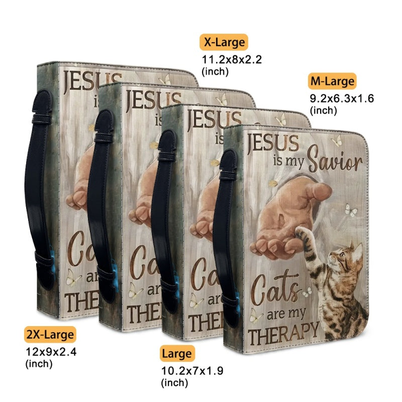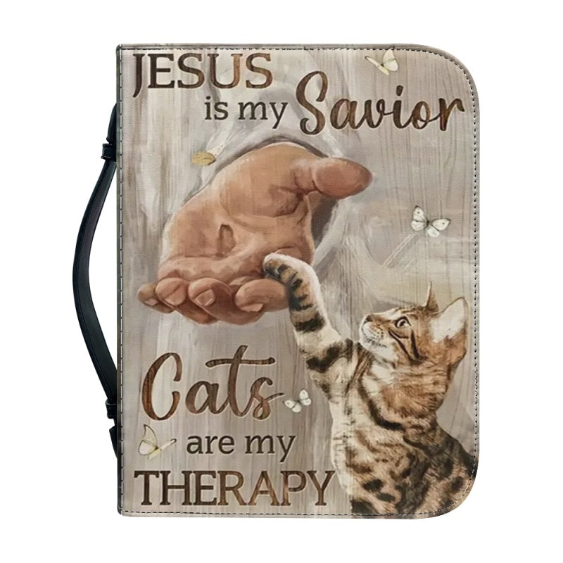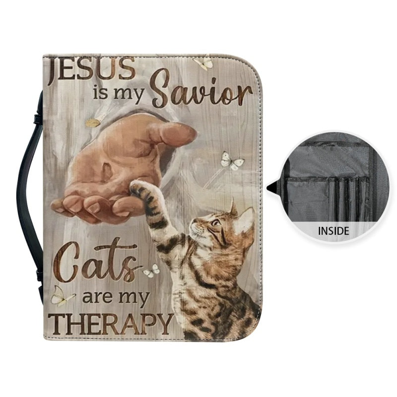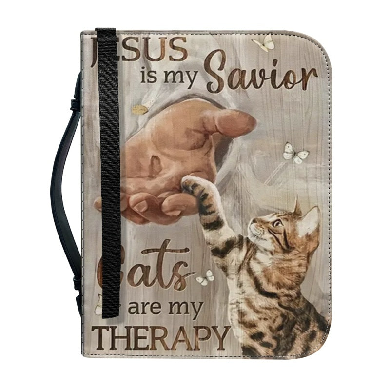 Christianartbag Bible Cover, Jesus Is My Savior Cats Are My Therapy Bible Cover, Personalized Bible Cover, Bible Cover Christ and Cats, Christian Gifts, CAB07151023.