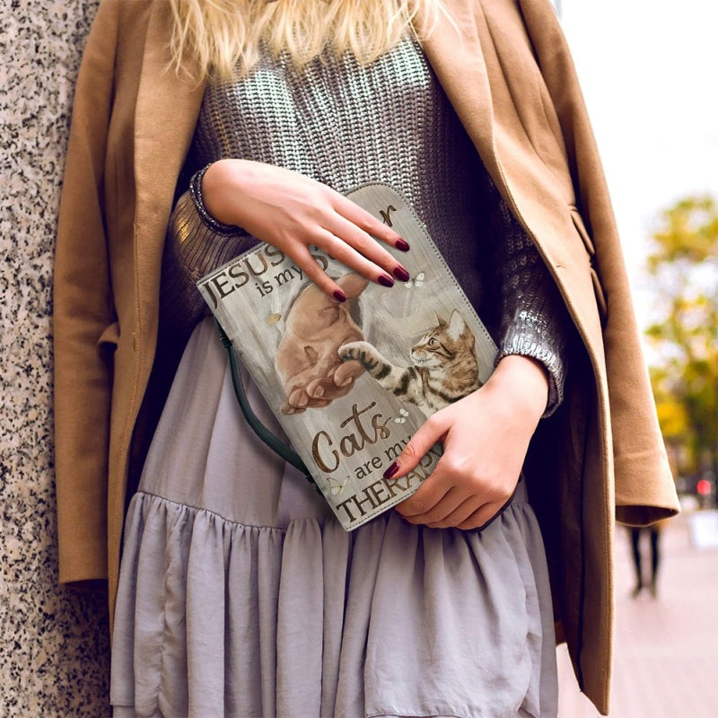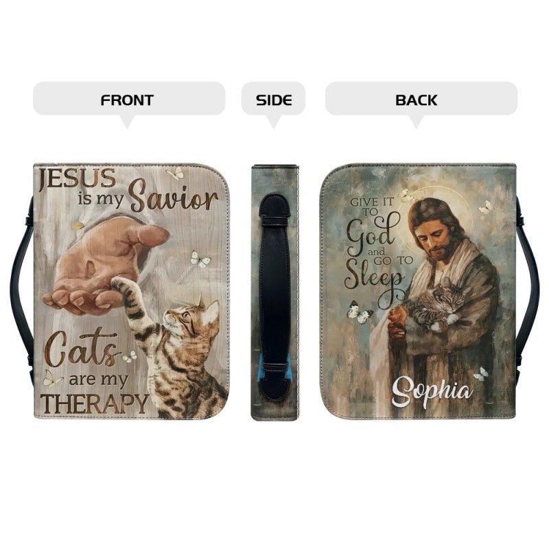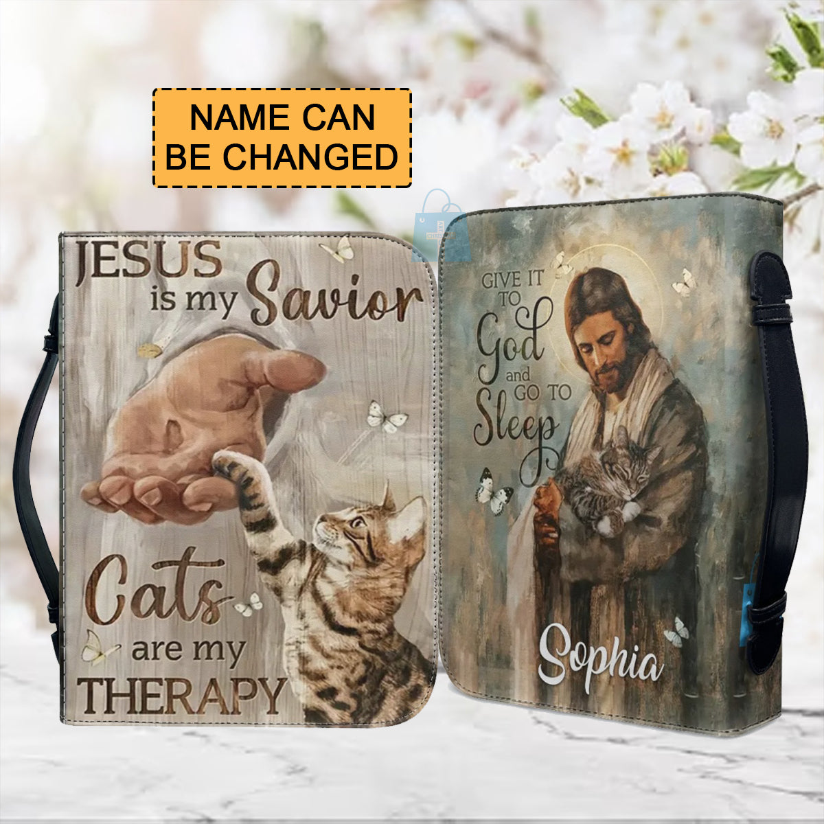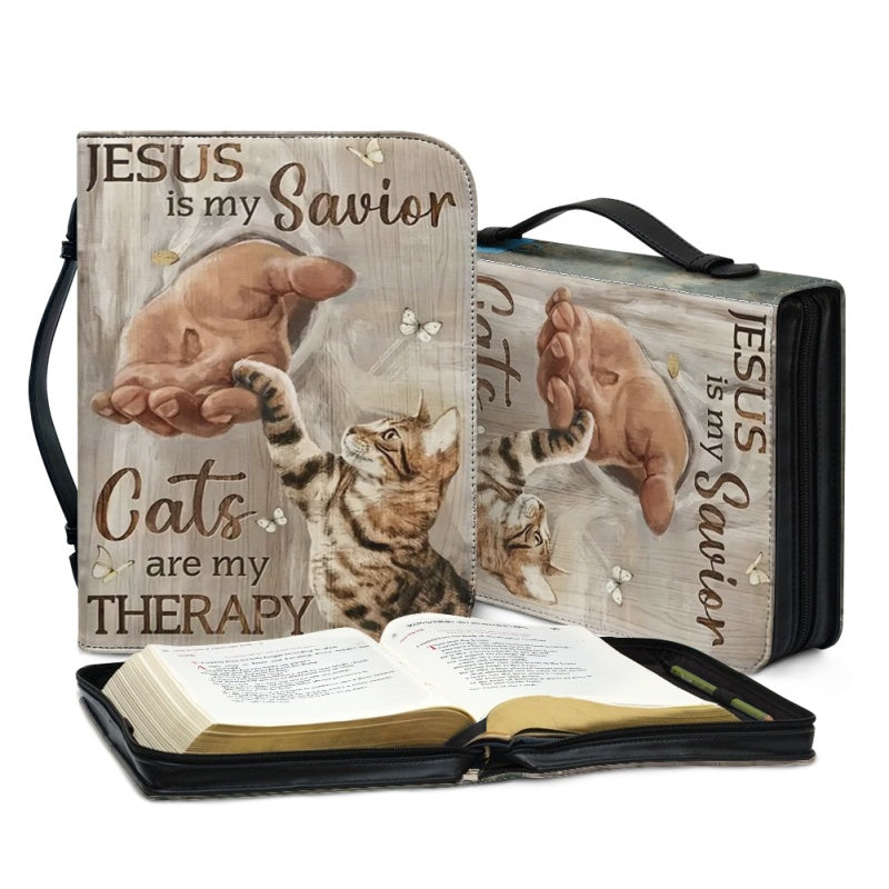 Christianartbag Bible Cover, Jesus Is My Savior Cats Are My Therapy Bible Cover, Personalized Bible Cover, Bible Cover Christ and Cats, Christian Gifts, CAB07151023.