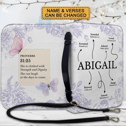 CHRISTIANARTBAG Bible Cover - Uncover the sacred meaning of your name - She is Clothed With Strength and Dignity - Personalized Bible Cover, CABBBCV01051525.